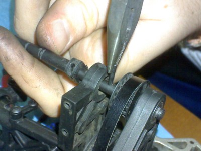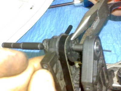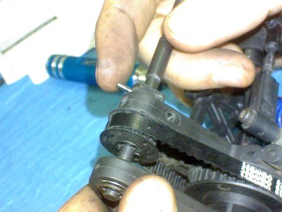 Ora, aiutandovi con una pinza, rimettete il perno della puleggia centrandolo